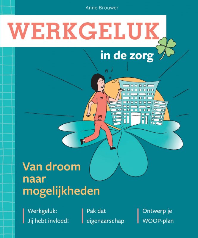 Antwoorden op deze vragen – en nog veel meer – vind je in het boek Werkgeluk in de zorg van Anne Brouwer. Voorbeelden uit de dagelijkse zorgpraktijk laten zien hoe je (samen met collega’s) op een positieve manier kunt werken aan werkgeluk. Dit boek helpt je om met frisse en open blik naar je eigen werkgeluk (én dat van je collega’s) te kijken: